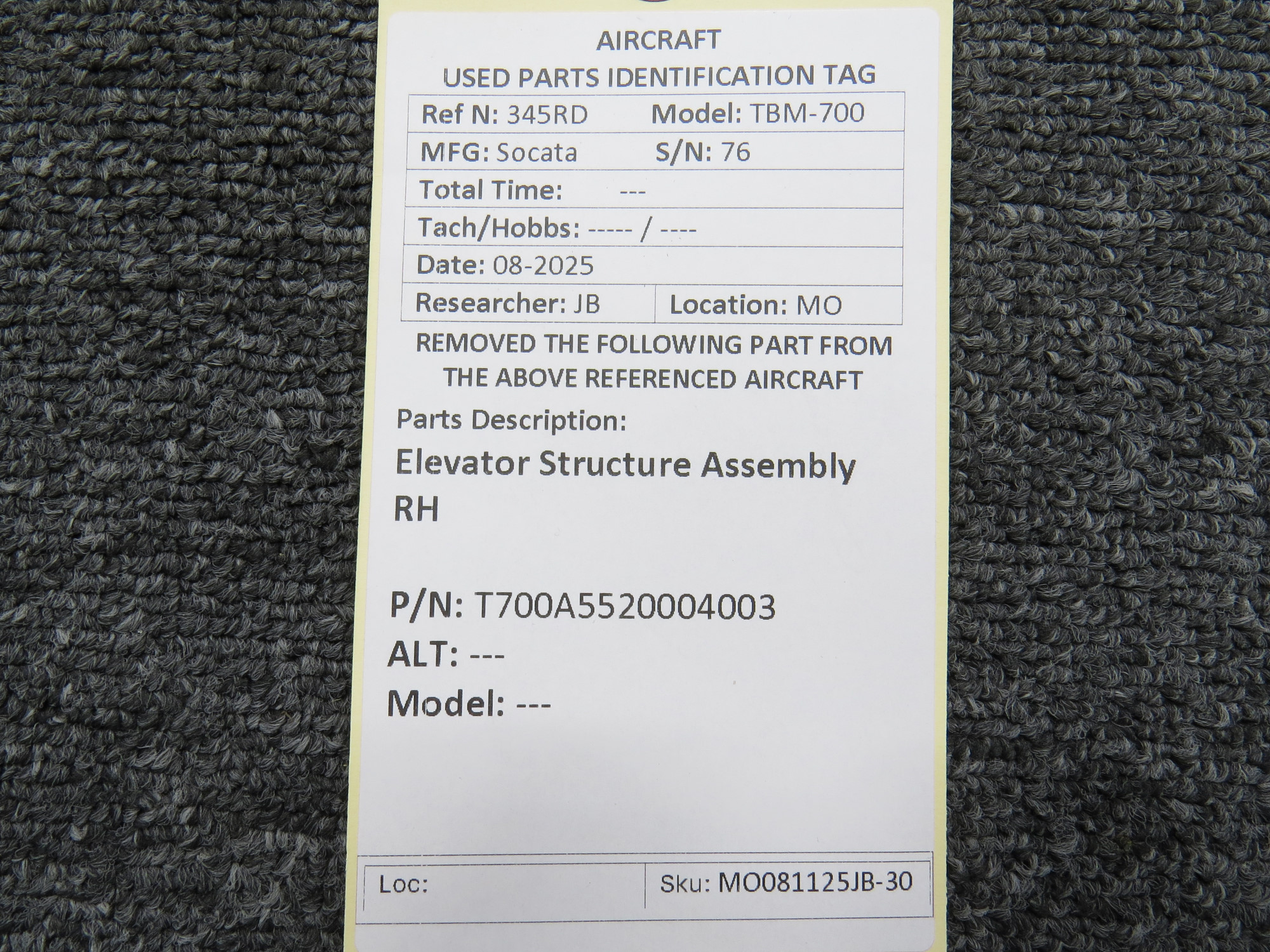 Unless specifically noted, most of our used airplane parts are sold in the condition they were removed, which means you should expect the usual signs of wear and tear.