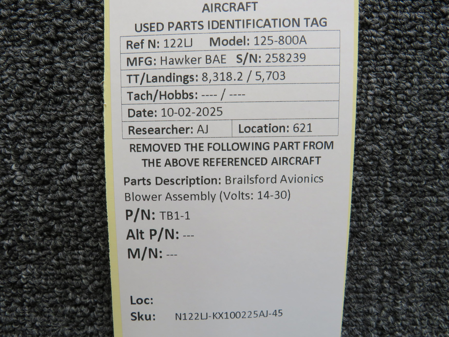 Every part is carefully inspected throughout our process and several times before it goes online. Most items are sold as-removed, just as they came off the aircraft. These parts are not functionally tested. What we do provide is clear photos, full traceability when available, pricing that reflects the as-removed condition, and a no-nonsense 90-day return window.