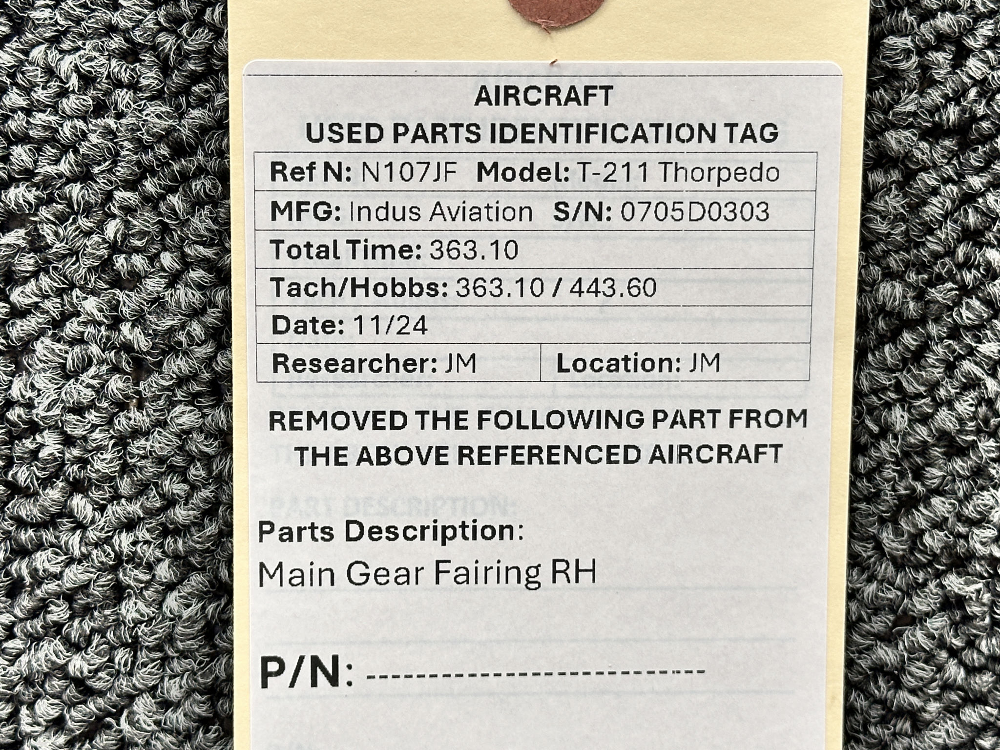 - Removed From: Indus Aviation T-211 Thorpedo