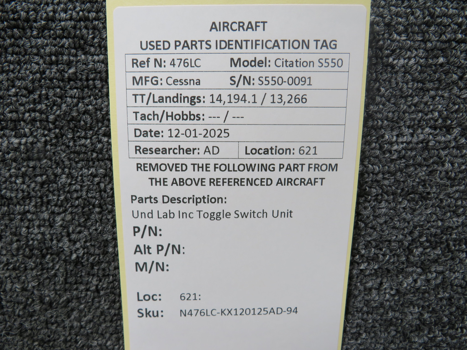 Unless specifically noted, most of our used airplane parts are sold in the condition they were removed, which means you should expect the usual signs of wear and tear.