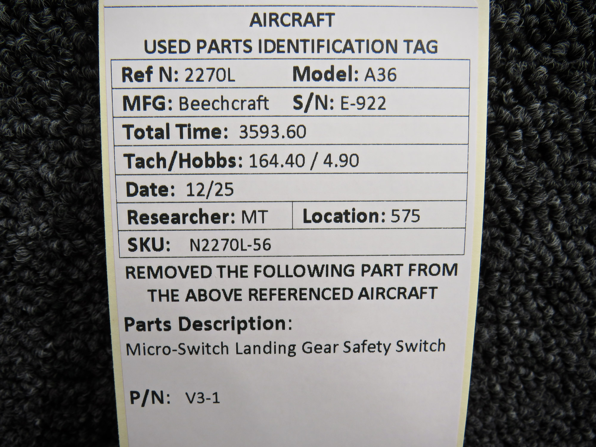 Every part is carefully inspected throughout our process and several times before it goes online. Most items are sold as-removed, just as they came off the aircraft. These parts are not functionally tested. What we do provide is clear photos, full traceability when available, pricing that reflects the as-removed condition, and a no-nonsense 90-day return window.