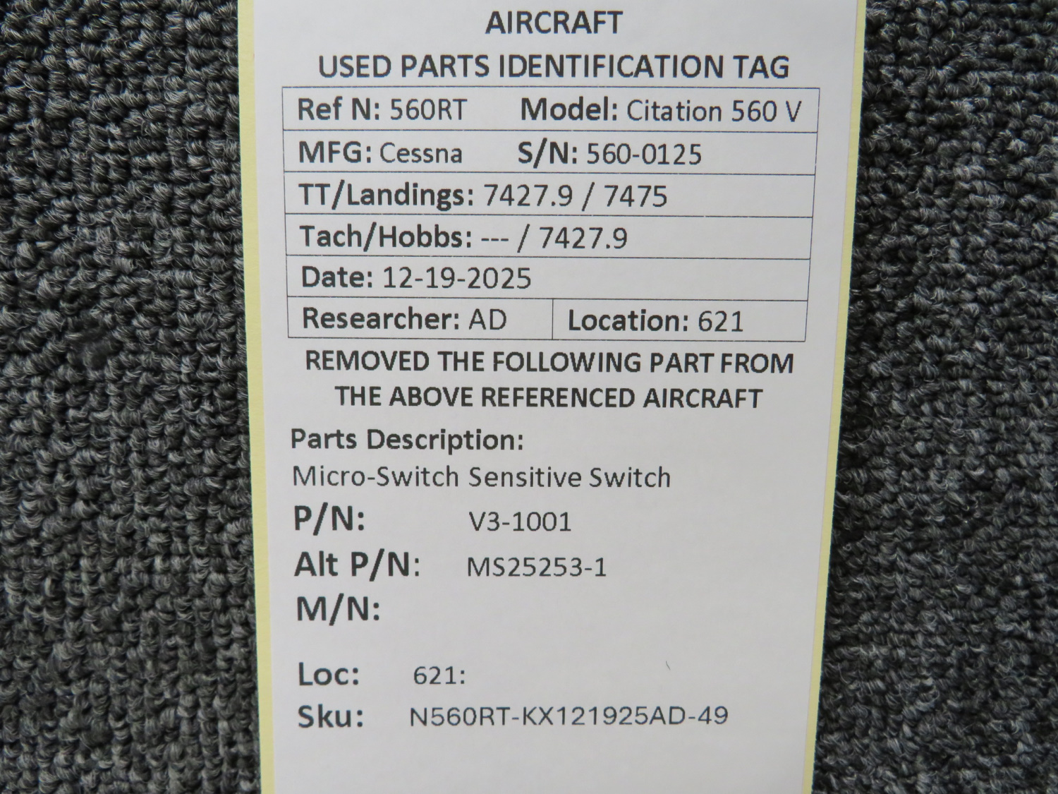Unless specifically noted, most of our used airplane parts are sold in the condition they were removed, which means you should expect the usual signs of wear and tear.