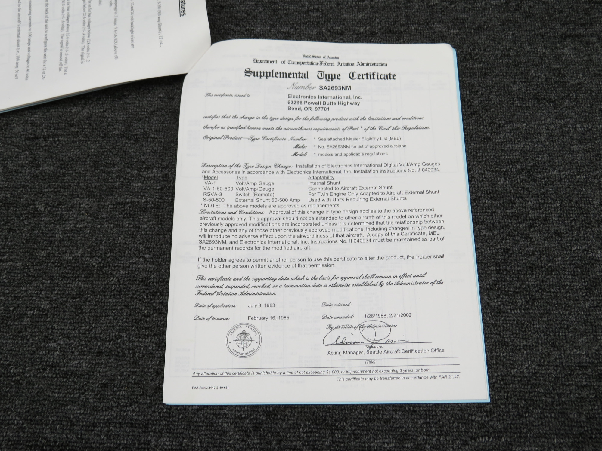 - Part Number: VA-1A-125