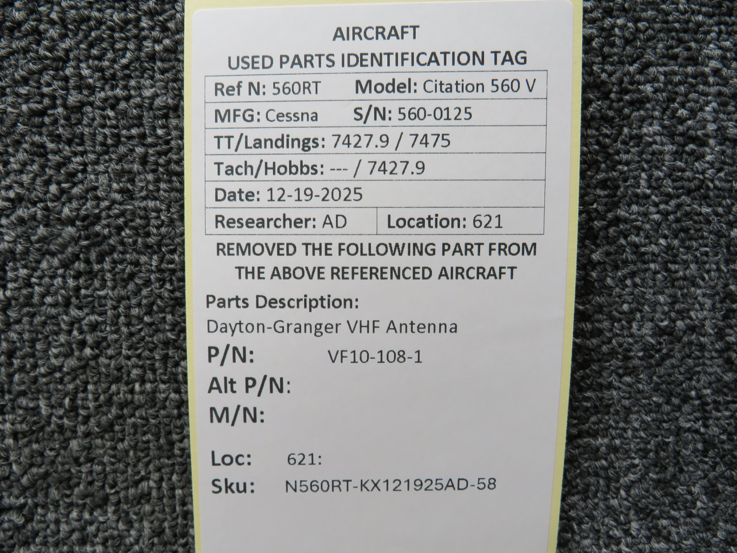 Unless specifically noted, most of our used airplane parts are sold in the condition they were removed, which means you should expect the usual signs of wear and tear.