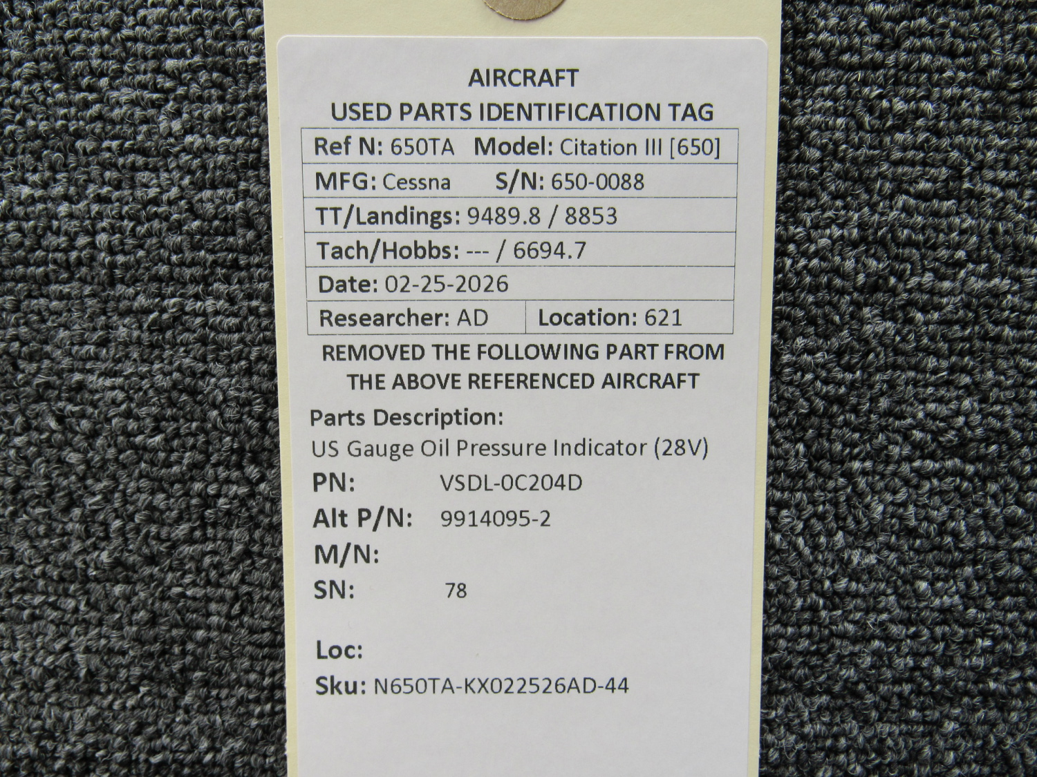 Unless specifically noted, most of our used airplane parts are sold in the condition they were removed, which means you should expect the usual signs of wear and tear.
