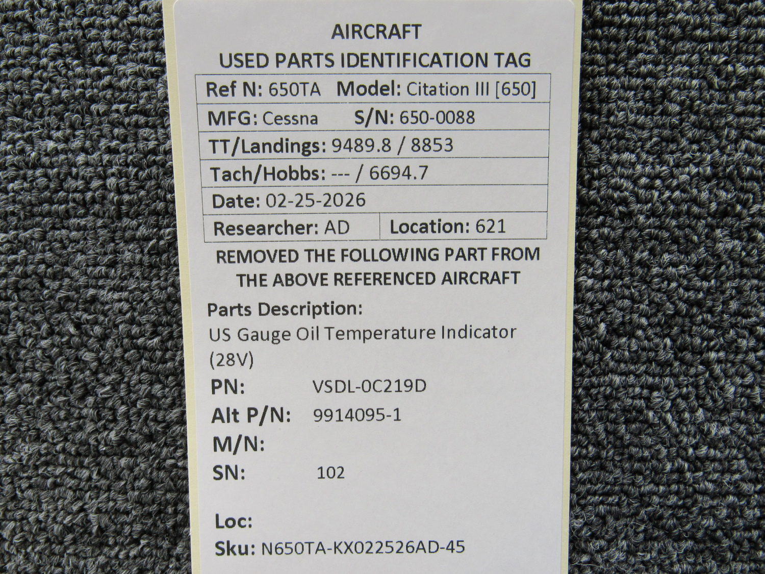 Unless specifically noted, most of our used airplane parts are sold in the condition they were removed, which means you should expect the usual signs of wear and tear.