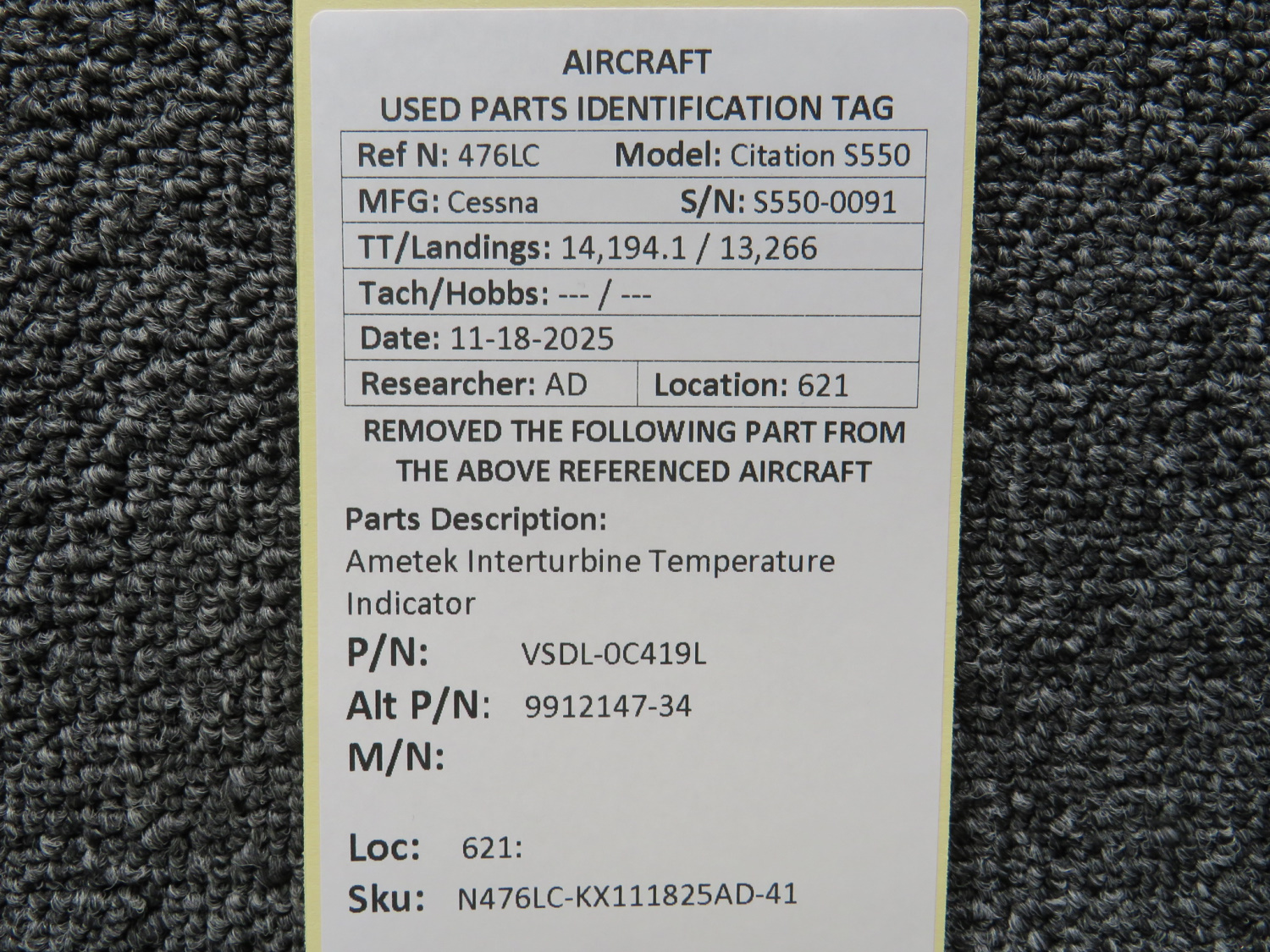 Unless specifically noted, most of our used airplane parts are sold in the condition they were removed, which means you should expect the usual signs of wear and tear.