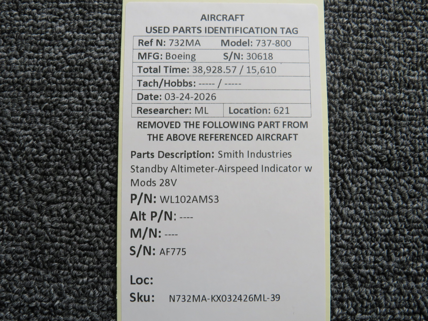 Every part is carefully inspected throughout our process and several times before it goes online. Most items are sold as-removed, just as they came off the aircraft. These parts are not functionally tested. What we do provide is clear photos, full traceability when available, pricing that reflects the as-removed condition, and a no-nonsense 90-day return window.