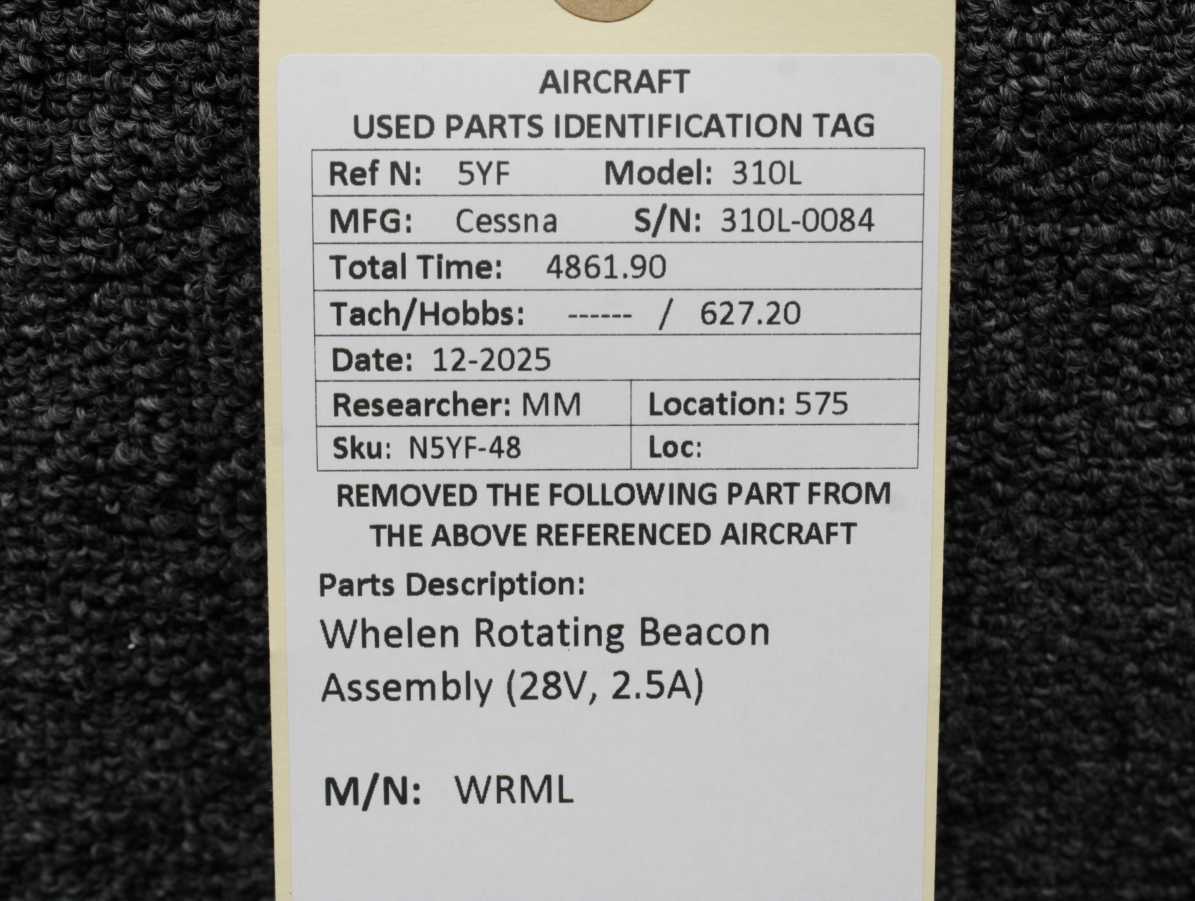 Unless specifically noted, most of our used airplane parts are sold in the condition they were removed, which means you should expect the usual signs of wear and tear.