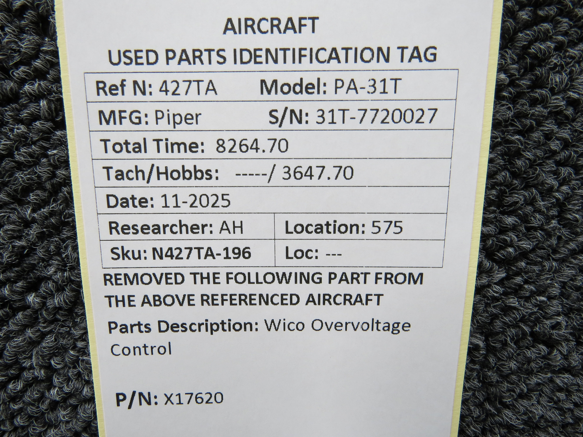 Unless specifically noted, most of our used airplane parts are sold in the condition they were removed, which means you should expect the usual signs of wear and tear.
