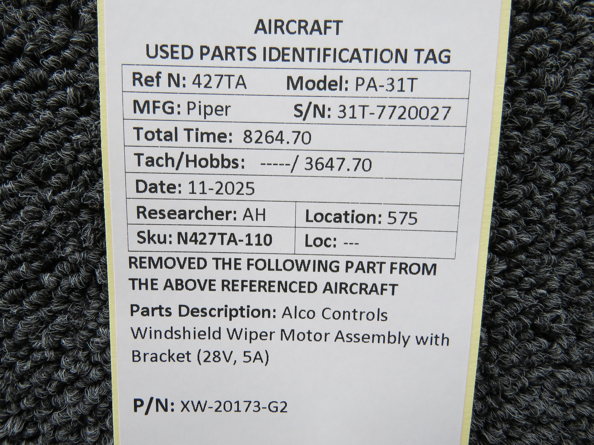 Unless specifically noted, most of our used airplane parts are sold in the condition they were removed, which means you should expect the usual signs of wear and tear.