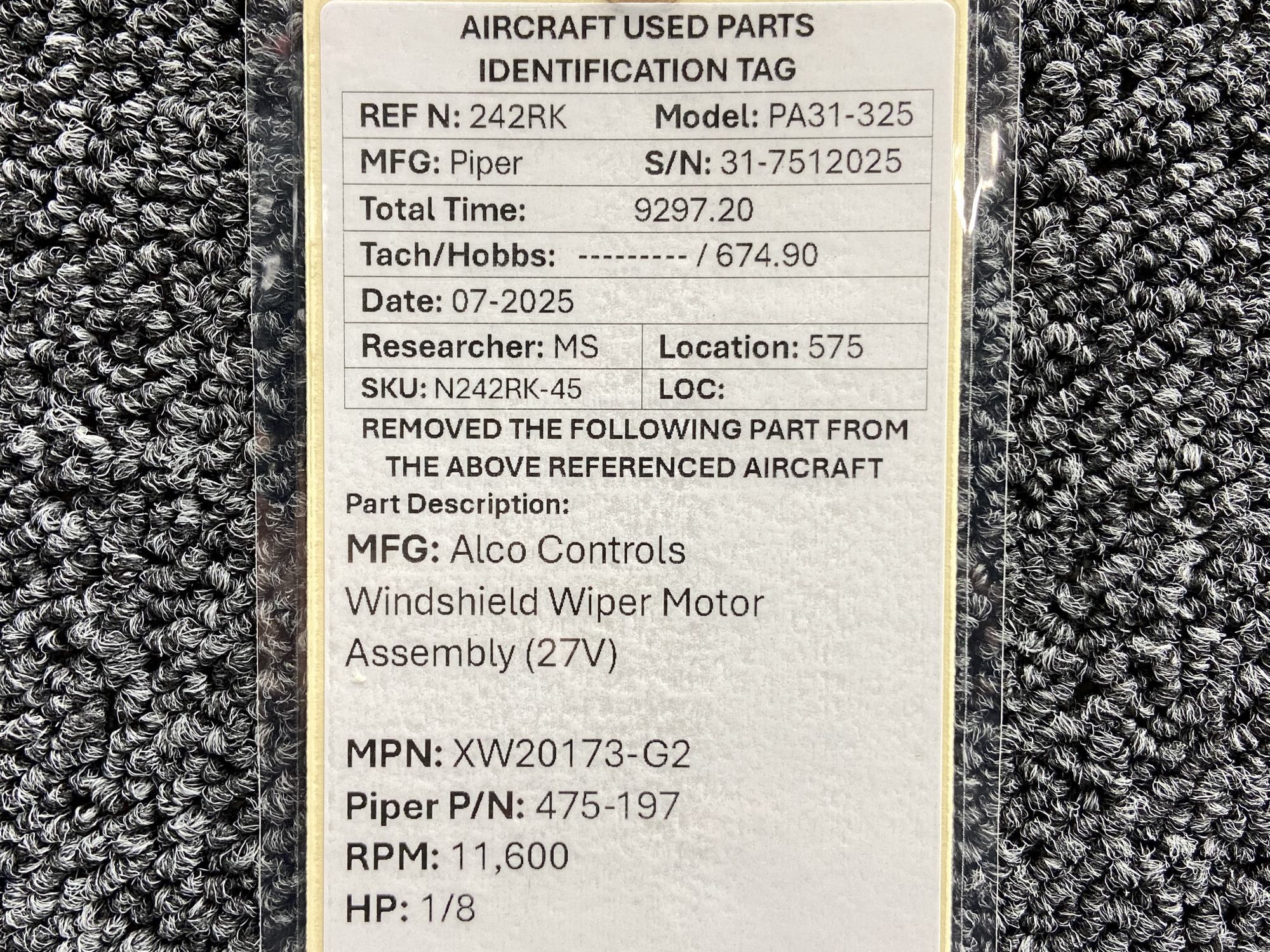 Unless specifically noted, most of our used airplane parts are sold in the condition they were removed, which means you should expect the usual signs of wear and tear.