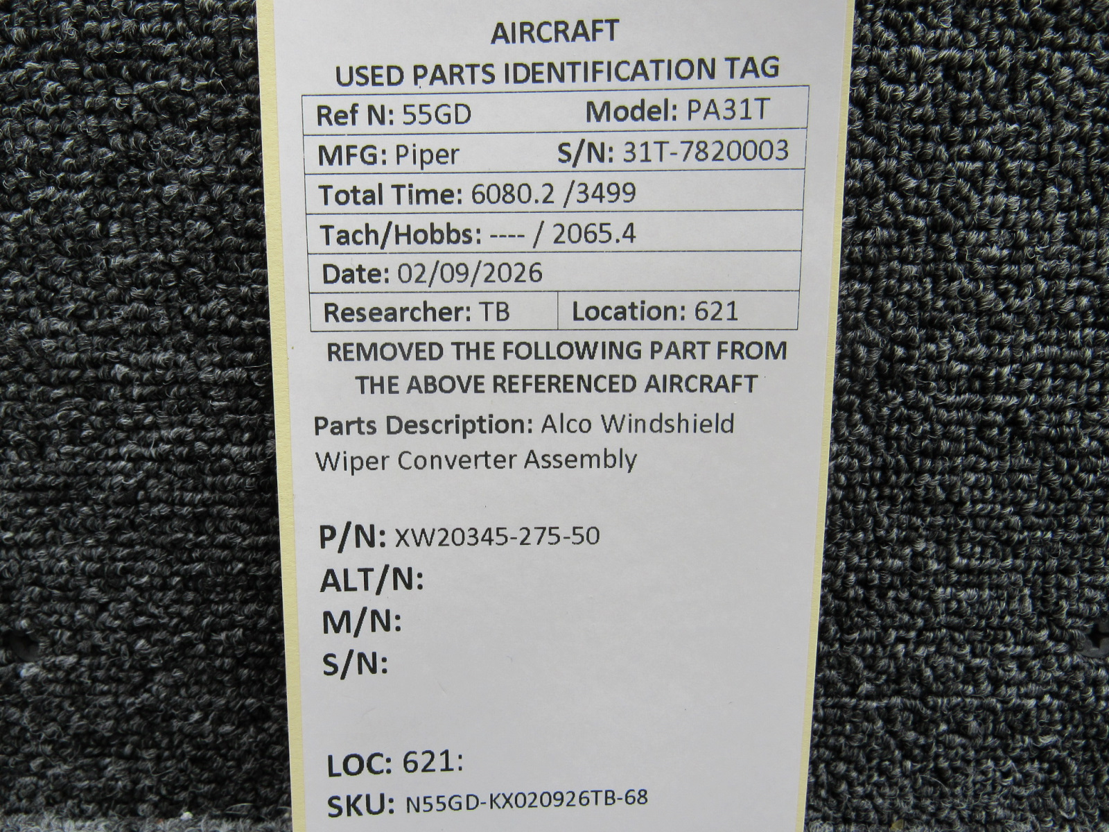 Unless specifically noted, most of our used airplane parts are sold in the condition they were removed, which means you should expect the usual signs of wear and tear.