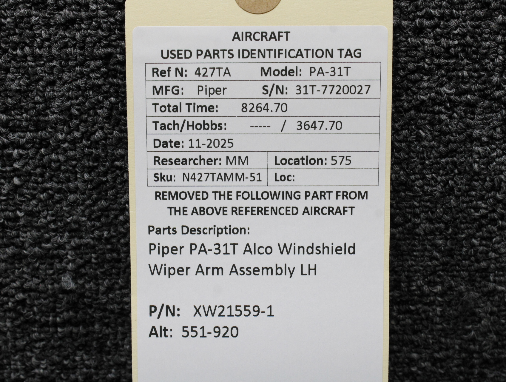 Unless specifically noted, most of our used airplane parts are sold in the condition they were removed, which means you should expect the usual signs of wear and tear.