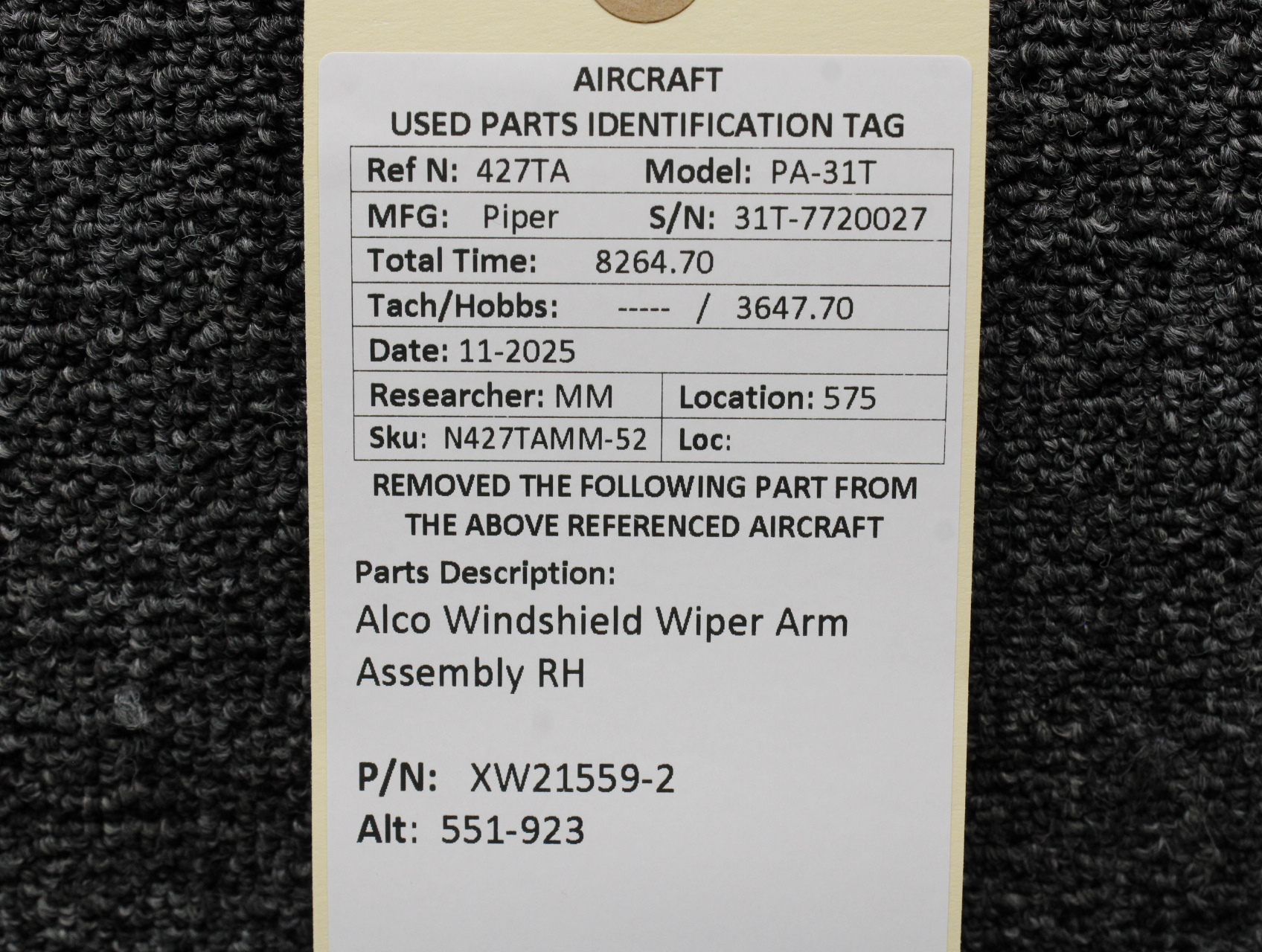 Unless specifically noted, most of our used airplane parts are sold in the condition they were removed, which means you should expect the usual signs of wear and tear.