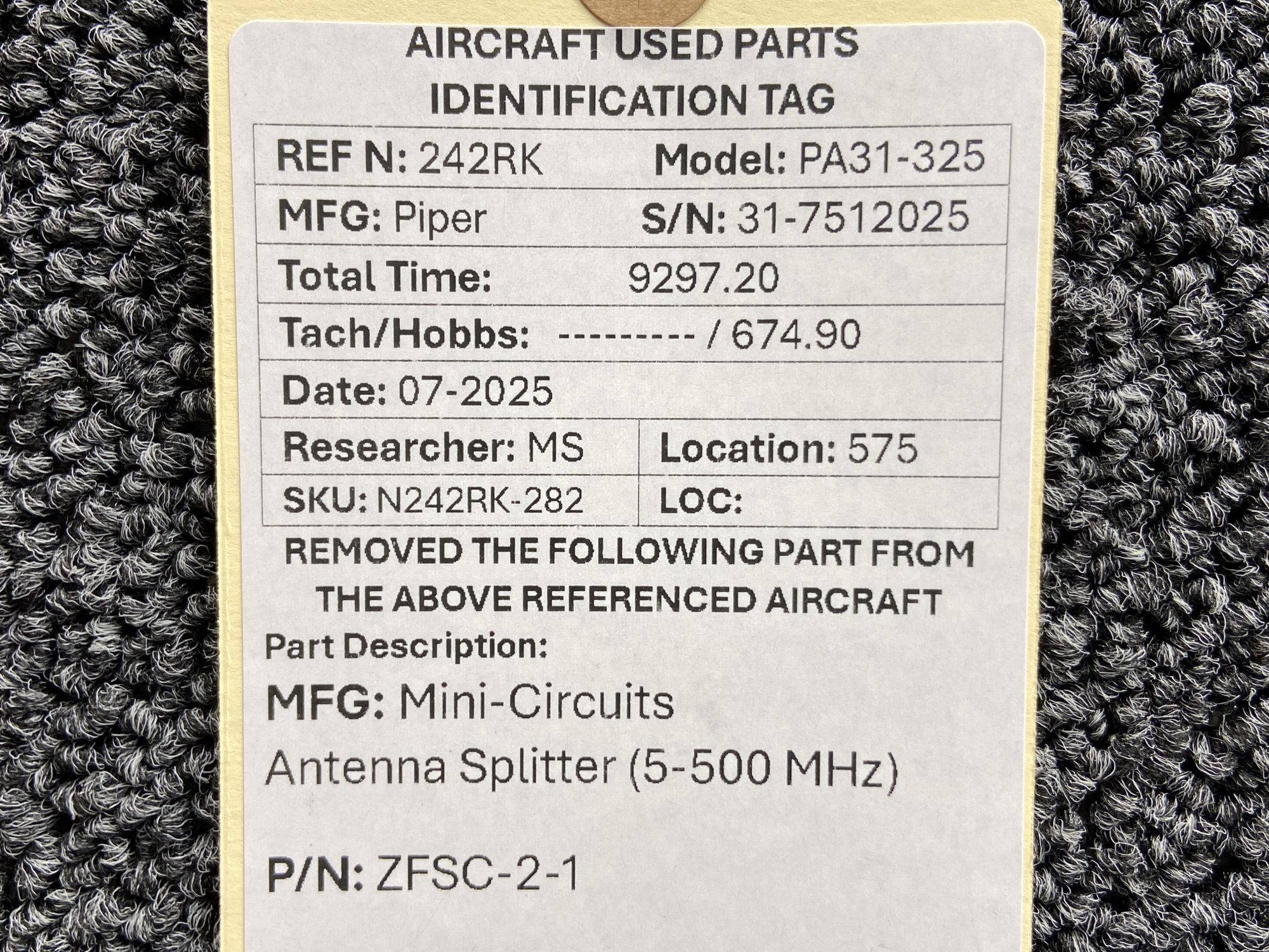 Unless specifically noted, most of our used airplane parts are sold in the condition they were removed, which means you should expect the usual signs of wear and tear.